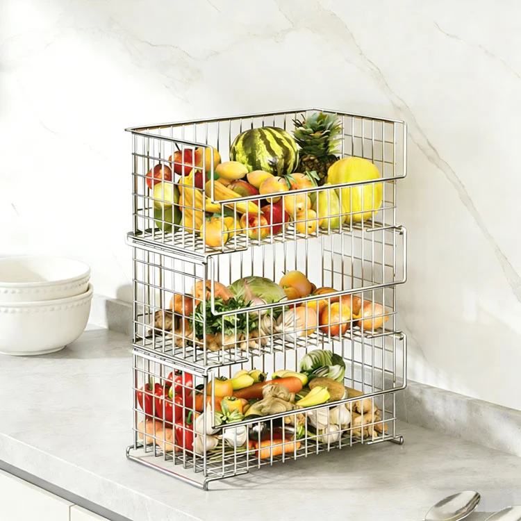Rak penyimpanan serbaguna yang dipasang di dinding dari baja tahan karat ini menggabungkan fungsi penumpukan lantai dan penyimpanan gantung dalam keranjang penyimpanan jaring besi tempa. Ini dirancang khusus untuk berbagai skenario seperti dapur, kamar mandi, dan balkon. Dapat digunakan sebagai rak penyimpanan lantai berkapasitas besar untuk menyimpan buah-buahan, sayuran, dan barang-barang lainnya, dan juga dapat diubah menjadi keranjang penyimpanan gantung untuk mengatasi masalah penyimpanan yang tersebar di dinding dan pintu lemari. Ini adalah pilihan ideal bagi rumah tangga berukuran kecil untuk meningkatkan pemanfaatan ruang.
